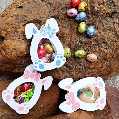 Sacolas de papel com coelhinho da Páscoa e janela, lindas sacolas para doces. &Caixas de presente com orelhas de coelho e chocolates para lembrancinhas de Páscoa, recompensas escolares, brindes para