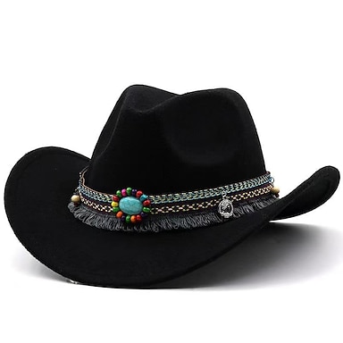 chapéu de cowboy ocidental com cinto de metal, chapéu de cowboy jazz masculino e feminino com aba larga de couro, cloche, igreja, sombrero, cowgirl