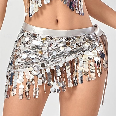 Cinto de Dança com Franja de Lantejoulas de Dança do Ventre da Samba Dancewear - Cinto de Performance Sexy com Sash na Cintura e Saia Curta Fantasia de Performance