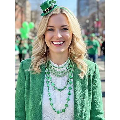 Conjunto de colares femininos de várias peças para o Dia de São Patrício, colares em camadas com contas de trevo verde, pacote combinado de plástico com vários estilos, acessórios festivos para festas irlandesas.