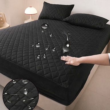 Protetor de colchão impermeável, resistente à urina, de cor sólida, com cobertura total, acolchoado, escovado, antipoeira e antiderrapante para proteção da cama.