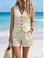 Conjunto de Colete e Short de Linho Feminino Como Algodão Falso Top Bolero Sem Manga Decote em V Lisa Moda Streetwear Casual Diária ao Ar Livre Preto Branco Verde Oliva Verão Ajuste Regular