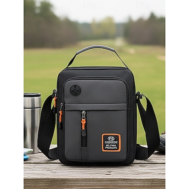 Bolsa transversal masculina em tecido oxford, multicolorida, com grande capacidade e vários compartimentos, alça de ombro ajustável, ideal para uso casual, viagens e atividades ao ar livre.