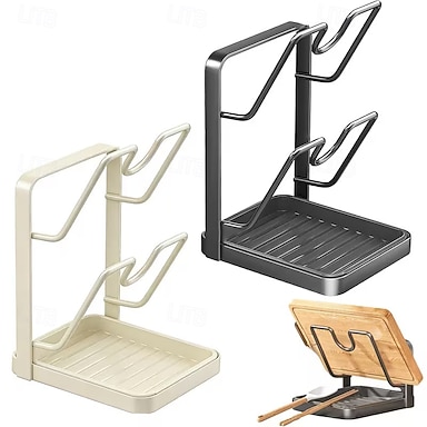Suporte para tampas de panelas na cozinha, feito em aço carbono reforçado, ideal para usar durante o cozimento. &Descanso de colher, organizador multifuncional de tampas de panelas com bandeja