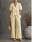 Mulheres Conjuntos de calças Bolero Linho de algodão sintético Manga Longa Colarinho de Camisa Côr Sólida Moda Roupa de rua Casual Diário Ao ar livre Branco Cáqui Cinzento Escuro Verão Normal
