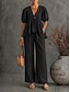 Mulheres Conjuntos de calças Linho de algodão sintético Manga Curta Colarinho de Camisa Tecido Franzido Com Cordão Elegante Moda Roupa de rua Casual Diário Ao ar livre Preto Branco Cinzento Verão