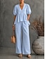 Mulheres Camisa Social Conjuntos de linho de algodão Conjuntos de duas peças Calças Pernas Largas Manga 3/4 Colarinho de Camisa Tecido Diário Básico Casual Diário Azul Branco Amarelo Primavera
