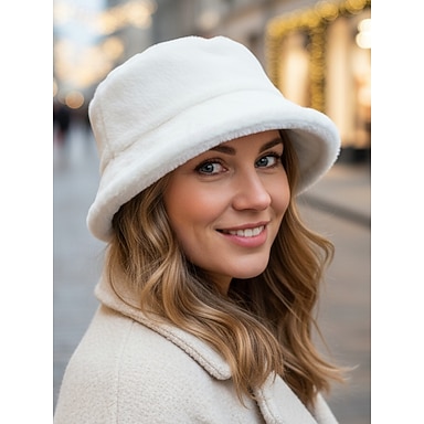 Chapéu bucket feminino de Natal em pele sintética, macio e aconchegante, disponível em várias cores – presente perfeito para as festas de fim de ano.