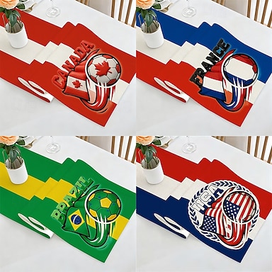 Caminho de mesa com tema de futebol 2026, 33x180cm, toalha de mesa decorativa para sala de jantar, sala de estar, festa, aniversário – decoração para quarto de fã de futebol, 1 peça
