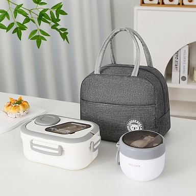 Conjunto de almoço portátil de 3 peças: bolsa térmica, lancheira e copo térmico - bolsa dobrável de alumínio com isolamento térmico e recipiente de polipropileno, ideal para escola, trabalho,