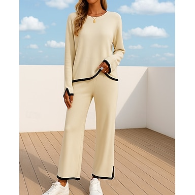 Mulheres Conjuntos de agasalhos com pulôver Moletons casuais Conjuntos de sala de estar de 2 peças Perna larga Cor Sólida Conjuntos Primavera Outono Preto Branco Exterior Viagem Cooper Manga Longa