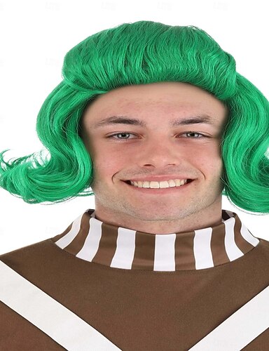 Perucas sintéticas Ondulado Trama Curly Corte Assimétrico Franja Lisa Fabrico à Máquina Peruca 12 polegadas A1 Cabelo Sintético Homens Clássico Confortável Cores Gradiente Verde Multi Cores
