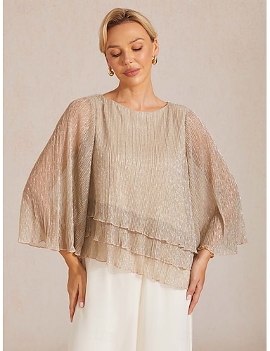 Mulheres Blusa Tops elegantes Multi Camadas Metálico Elegante à moda Manga 3/4 Sino Gola Redonda Tops regulares Diário Convidado do casamento Cinza-acastanhado Verão Primavera Outono