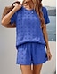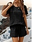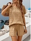 Mulheres Conjuntos de shorts Manga Curta Decote Redondo Côr Sólida Moda Roupa de rua Casual Diário Ao ar livre Azul Preto Camelo Verão Ajuste Largo