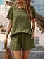 Mulheres Conjuntos de duas peças Linho de algodão sintético Manga Curta Calça curta Gola Redonda Cor imaculada Bolsos Cintura elástica Moda Conforto Macia Diário Casa Férias Branco Verde Tropa Cáqui