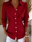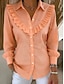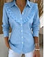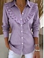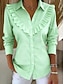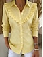 Blusa Feminina de Linho Sintético como Algodão com Babados e Botões Cor Sólida Elegante Estilosa Básica Manga Longa Gola de Camisa Tops Regulares Diários Azul Amarelo Verde Claro Vermelho Roxo Claro