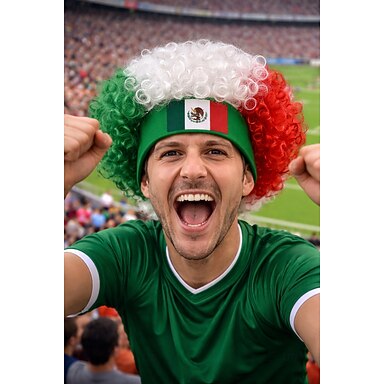 Peruca afro mexicana verde, branca e vermelha para líderes de torcida em eventos esportivos.
