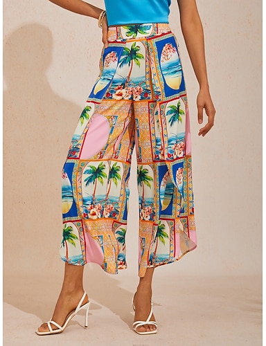 Calça de cetim de pernas largas com bainha curva e corte cruzado, perfeita para o verão.