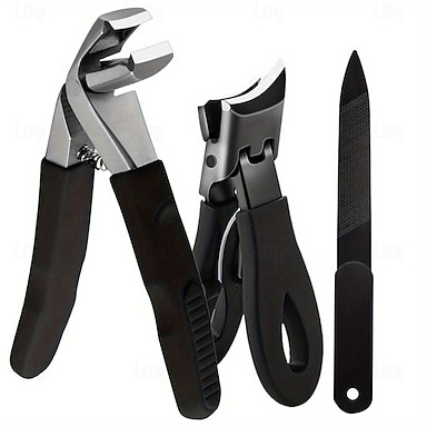 Conjunto de 3 cortadores de unhas de aço inoxidável, unhas grandes e curvas &cortador de unhas dos pés com cabo de borracha antiderrapante, empurrador de cutícula &ferramentas de pedicure para