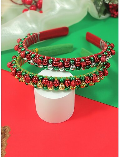 faixa de cabeça vermelha festiva de natal feminina com contas vermelhas, verdes e prateadas - acessório de cabelo para festas e comemorações