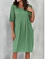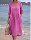 Vestido Midi Feminino Vestido de Verão Casual Diário Férias Praia Ajuste Regular Estilo Linho Liso Manga Curta Gola Em V Branco Rosa Azul Verde Verão