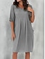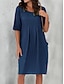 Vestido Mini de Linho Feminino Como Algodão Falso Vestido em A Vestido de Verão Casual Diário Solto Lisa Manga Curta Decote em V Azul Preto Branco Bege Verão Primavera