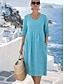 Vestido Maxi de Linho Falso para Mulheres Vestido em A Férias Casual Boho Ajuste Solto Manga Curta Gola Redonda Azul Preto Branco Verde Claro Verão Primavera Outono