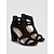 Sandálias femininas pretas de camurça com tiras - sapatos profissionais de salto bloco com design vazado, ideais para o trabalho no verão, cruzeiros e férias.