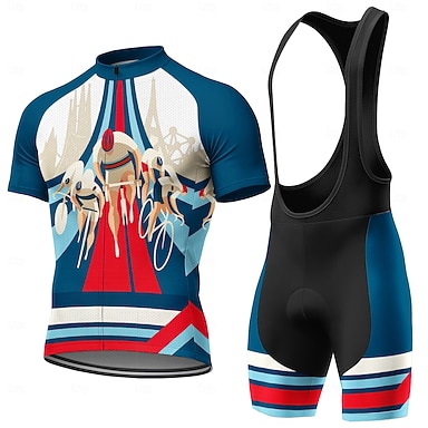 Homens Camisa para Ciclismo Camisa com Bermuda Bretelle Manga Curta Ciclismo de Montanha Ciclismo de Estrada Verão Primavera Azul Desenho Animado Geométrica Moto Filtro Solar Resistente a UV Tapete