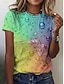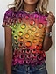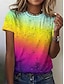 Mulheres Camiseta Imprimir Gráfico Cores Gradiente à moda Clássico Casual Manga Curta Gola Redonda Tops regulares Diário Branco / Preto Branco vermelho Branco Rosa Laranja Verão Primavera