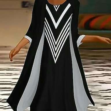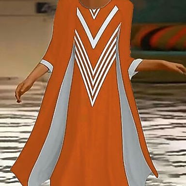 Mulheres conjunto de vestido Vestido de turno Vestido de verão Casual Âmbar Geométrica Multi Camadas Imprimir Vestido midi Manga 3/4 Gola Redonda Diário Branco Amarelo Laranja Primavera Outono Normal