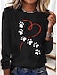 Dia dos Namorados Mulheres Camiseta Imprimir Coração Gráfico Moda à moda Clássico Manga Longa Gola Redonda Decote Redondo Tops regulares Diário Final de semana Azul Preto Azul Real Cinzento Verão