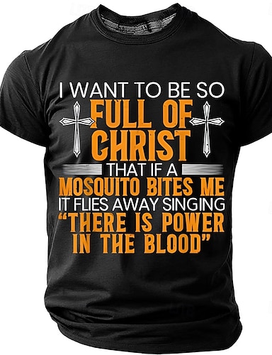 Camiseta Masculina Bíblia Engraçada Cristã Religiosa Eu Quero Estar Tão Cheio de Cristo Que Se Um Mosquito Me Picá Ele Voe Cantando Há Poder No Sangue Gráfico de Fé Tee Roupas