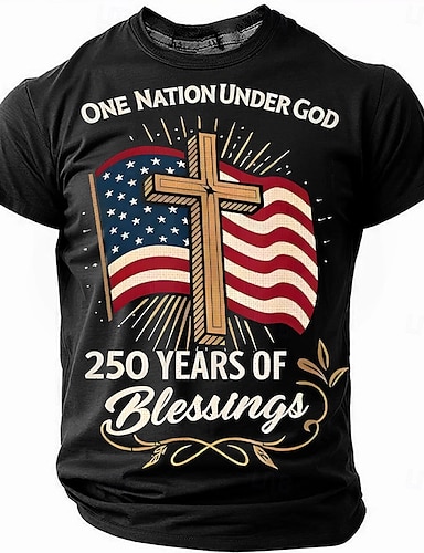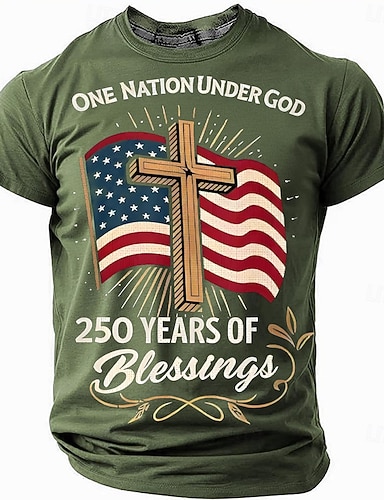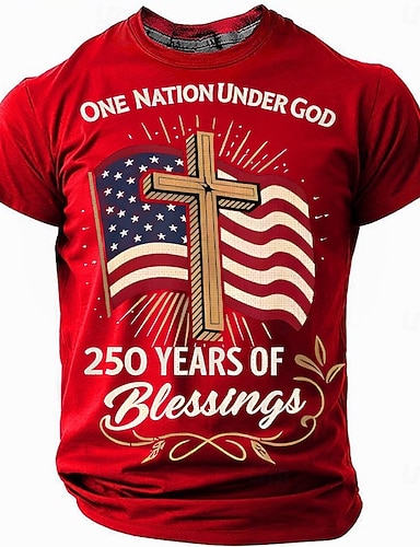 4 de Julho de 2026 250º Dia dos Homens da Bíblia Uma Nação Sob Deus Por 250 Anos Bandeira Vertical Cruz Estrela Círculo Patriótico Cristão Camiseta Gráfica Casual Designer Roupas