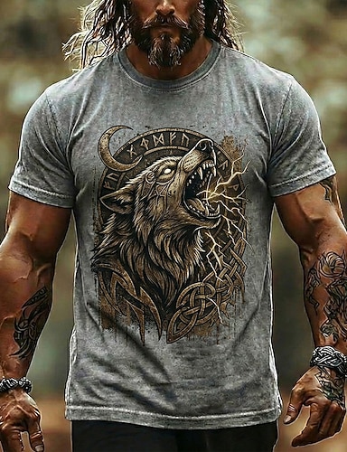Homens Animal Lobo Lightening Camisa Social camisa de botão Manga Longa Moda Casual Ao ar livre Dia a Dia Primavera Outono Aberto para a Lateral Impressão 3D camisas de colarinho Preto / Verde Preto