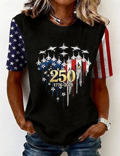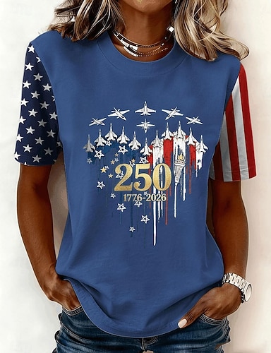 Dia da Independência Americana Mulheres Camiseta Imprimir Gráfico Letra Bandeira americana à moda Clássico Casual Manga Curta Gola Redonda Tops regulares Diário Azul Preto Branco Verde Verão Primavera