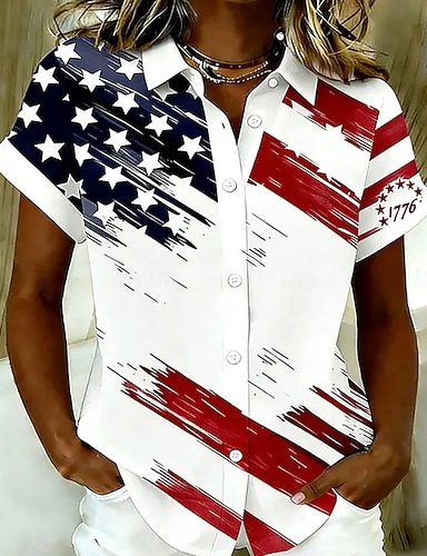 Dia da Independência Americana Mulheres Camisa Social Blusa Patchwork Gráfico Bandeira Abstrato Moda à moda Clássico Manga Longa Decote V Tops longos Diário Feriado Para Noite Azul Vermelho Roxo Verde