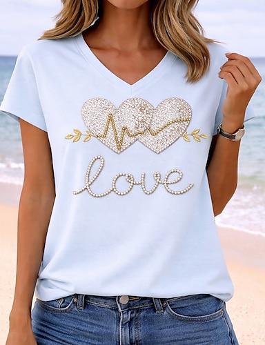 Mulheres Camiseta Imprimir Gráfico Letra Time de futebol à moda Clássico Casual Manga Curta Decote V Tops regulares Casual Diário Azul Verde com bege Preto Branco Amarelo Verão Primavera