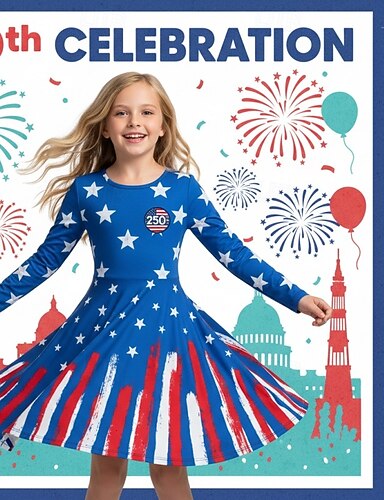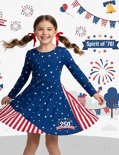Meninas 3D Gráfico Listra Estrelas Vestido Manga Longa Impressão 3D Primavera Outono Diário Férias Festa Casual Princesa Lindo Infantil 4-12 anos Vestido casual Vestido A Line Altura dos Joelhos