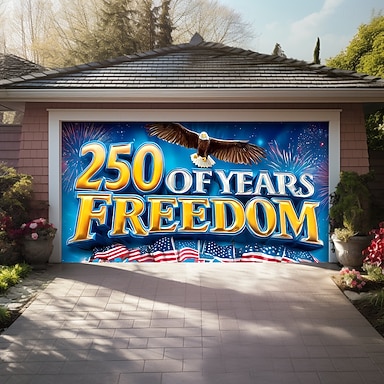 4 de julho de 2026 250º Dia da Memória Banners de Tapeçaria Capa de Porta de Garagem Águia Bandeira Americana Impressão 3D Festa Moderna Patriótica Cenários de Tiro Presente Decoração para Casa