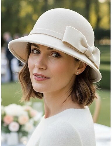 Chapéu cloche feminino em poliéster com laço, elegante e estiloso, disponível em várias cores, perfeito para ocasiões casuais e formais.