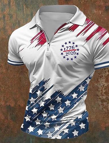 4 de Julho de 2026 250º Dia Memorial Camiseta Masculina Imprimida em 3D Bandeira dos EUA Gola Careca de Manga Curta Dia a Dia