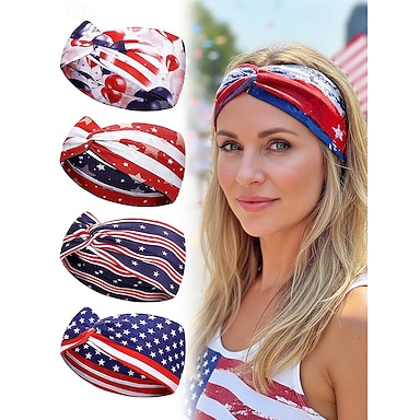 Faixa de Cabeça Patriótica Feminina de Poliéster dos Estados Unidos 250º Aniversário Enrolar de Cabelo Elástico e Esticável com Múltiplos Estilos da Bandeira dos EUA Leve e Confortável Festiva para o
