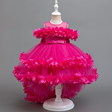 Infantil Para Meninas Vestido de festa Côr Sólida Manga Curta Casamento Espetáculo Princesa Doce Poliéster Altura dos Joelhos Verão Primavera Outono 7 - 9 anos Colorido Branco Rosa