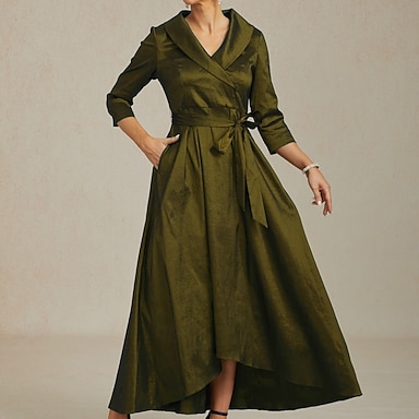Mulheres Vestido Longo Vestido Envelope Elegante Festa de Noite Convidado do casamento Assimétrico Normal Côr Sólida Manga 3/4 Decote V Verde Esmeralda