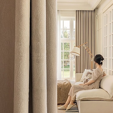 Cortinas térmicas texturizadas em linho blackout proteção de privacidade drapeados cortinas de anel superiores redutoras de ruído para quarto/sala de estar/hotel 1pc