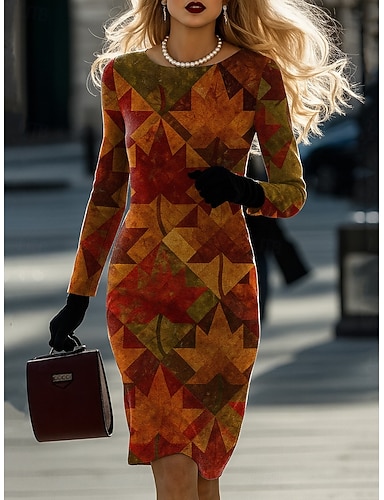 Mulheres Minivestido Vestido espartilho Casual Diário Festa Normal Floral Abstrato Manga Longa Gola Redonda Azul Laranja Verde Outono Inverno