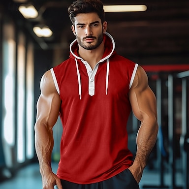 Homens Regata Waffle Colete camisa sem manga Sem Manga Com Capuz Verão Tecido Moda Esportivo Clássico Com Capuz Rua Casual Esportes Preto Branco Vermelho Top Tee para Homens