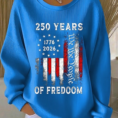Dia da Independência Aniversário Americano Pullover Feminino Suéter Gráfico Letra Casual Estampa Manga Longa Meio Zíper Casual Roupas Diárias Esportivas Azul Preto Rosa Vermelho Verde Primavera