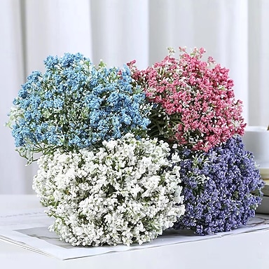 Buquê artificial de gipsófila, 16 hastes de jasmim-da-noite em espuma, arranjo floral artificial para decoração de casa, artesanato, adereços fotográficos e arranjos em vasos.